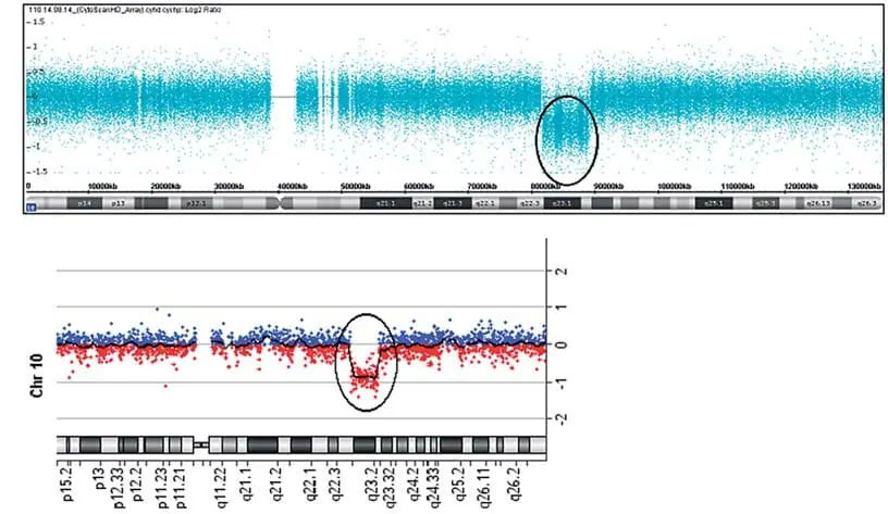 Alliman S, Coppinger J, Marcadier J, Thiese H, Brock P, et al: 10q22.3q23.2における再発性ゲノム障害患者の臨床的および分子的特徴付け。 Clin Genet 78: 162-168 (2010)