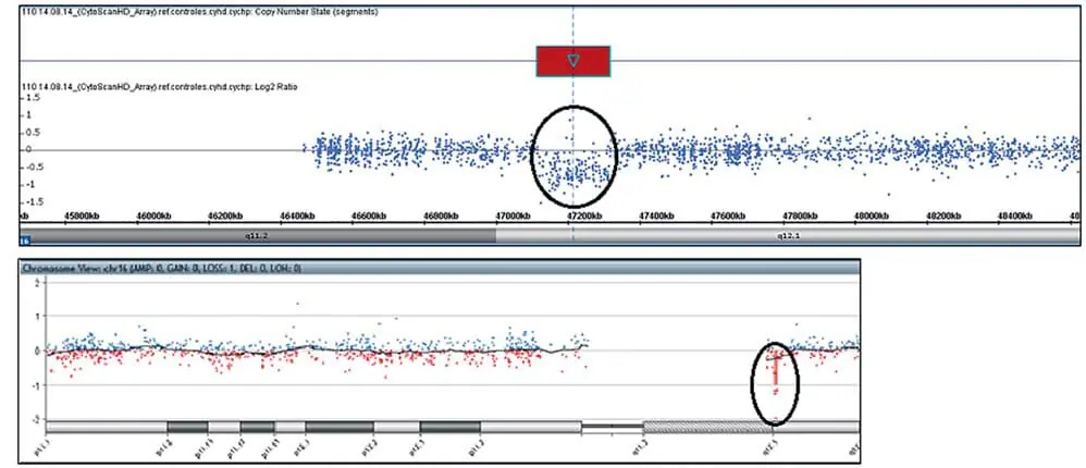 さらに、著者らの患者は、表現型に関連する可能性のある189 kbの16q12.1の微小欠失を有している。