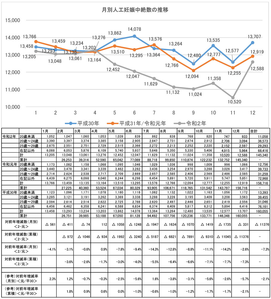 Reference: Ministry of Health, Labour and Welfare – 令和2年度の人工妊娠中絶数の状況について