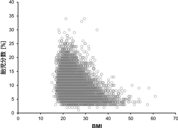 全体的な研究に含まれる13,607人の患者の患者の人口統計を表1に示します。すべての患者のほぼ半数が、親の不安のために最初にNIPTを受けることを選択しました。研究サンプルの平均胎児分画は9.62%で、範囲は1.20〜33.94%でした。胎児の割合と患者のBMIの関係を図2に示します。全体として、患者の86.6%が妊娠初期に検査を受けました。在胎週数と他の患者の特徴(母体年齢、BMI、胎児の割合)との関係を補足図1(オンラインリソース2)に示します。予想通り、BMIは、胎児の割合と同様に、在胎週数の増加とともに増加しました。胎児分画の顕著な増加は、妊娠20週以上からのみ観察されたが、妊娠の前の週では、胎児分画の有意であるがわずかな増加のみが観察された。スクリーニングの適応と母体の年齢、BMI、および胎児の割合との関係も調査されました(補足図2;オンラインリソース2)。